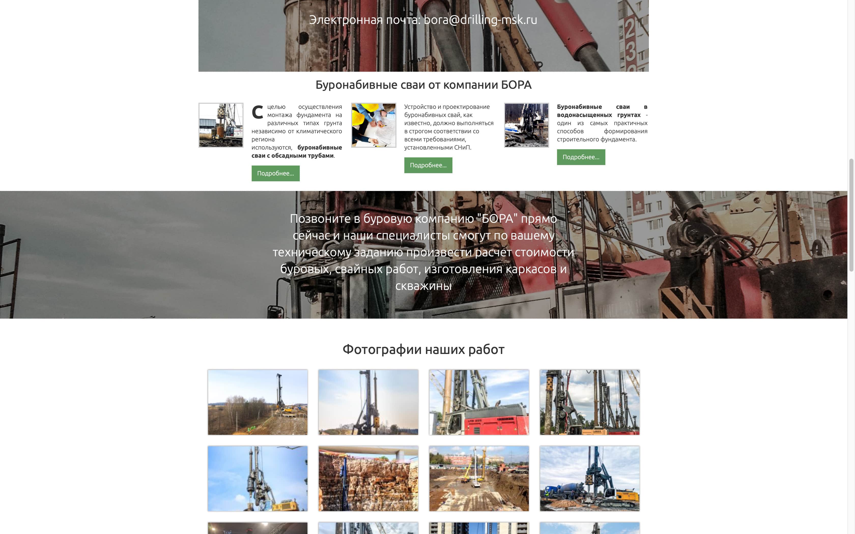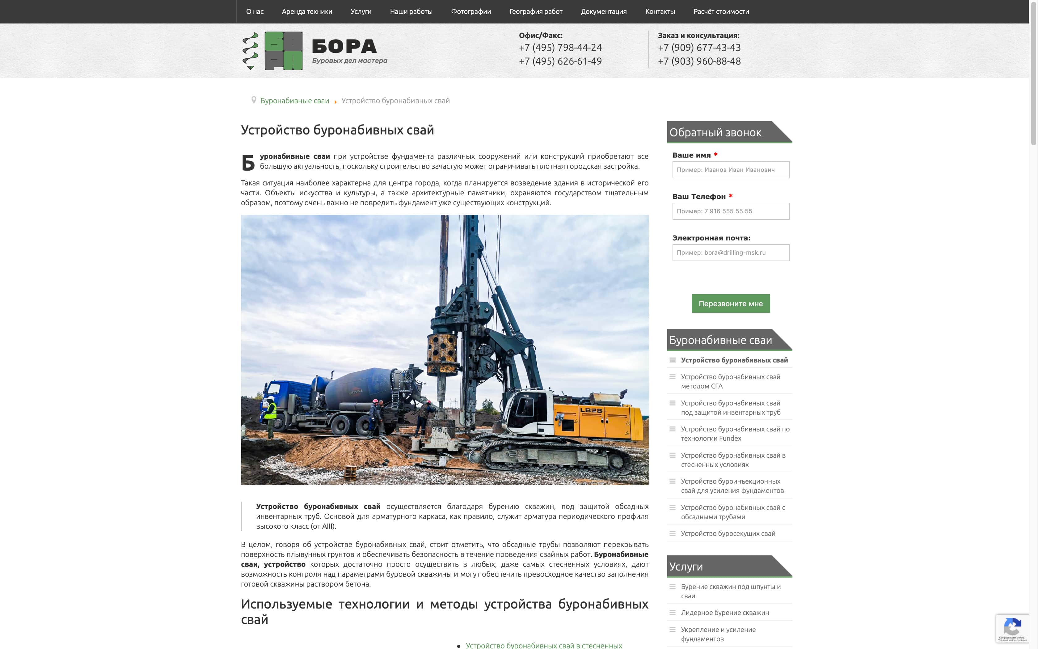 Компания БОРА, вот уже более 10 лет, осуществляет широкий спектр работ по устройству буронабивных свай с использованием различных технологий, бурению скважин разного типа, обслуживанию, лицензированию, ремонту всех видов скважин.