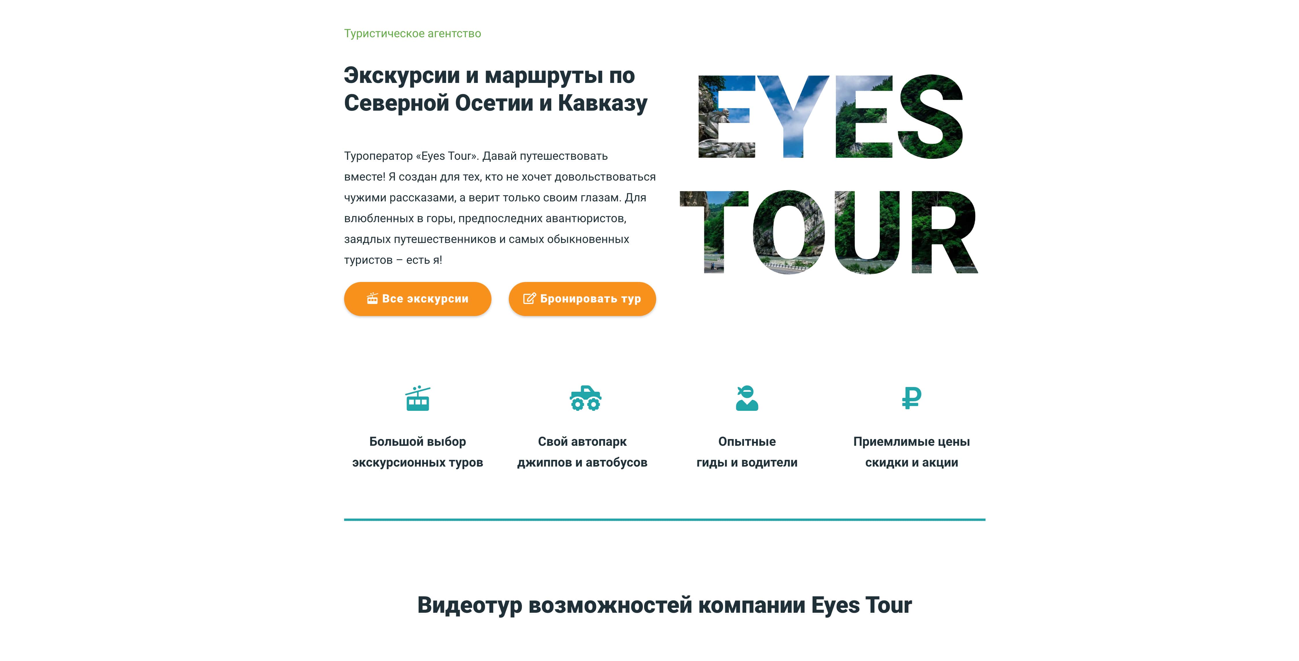 Веб-сайт для туристического и экскурсионного агентства в Северной Осетии Eyes Tour. Туры и экскурсии по Северному Кавказу