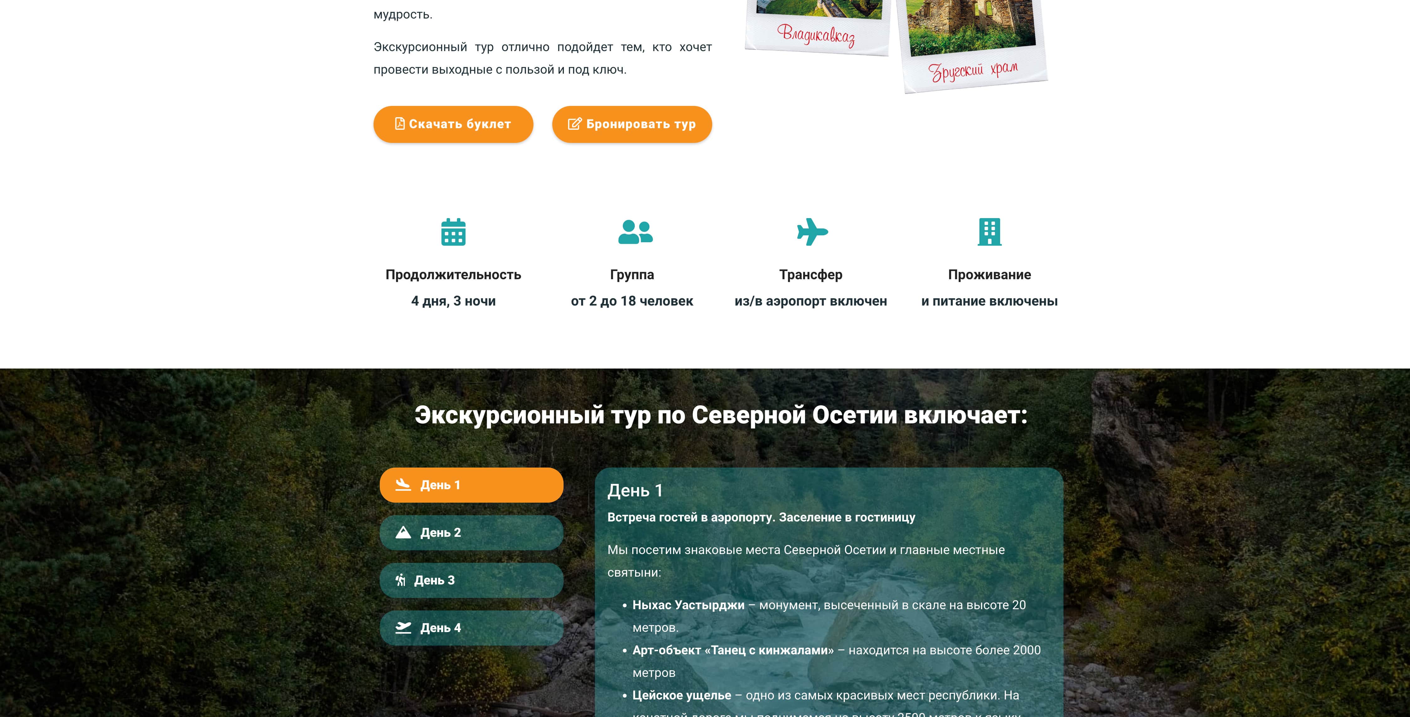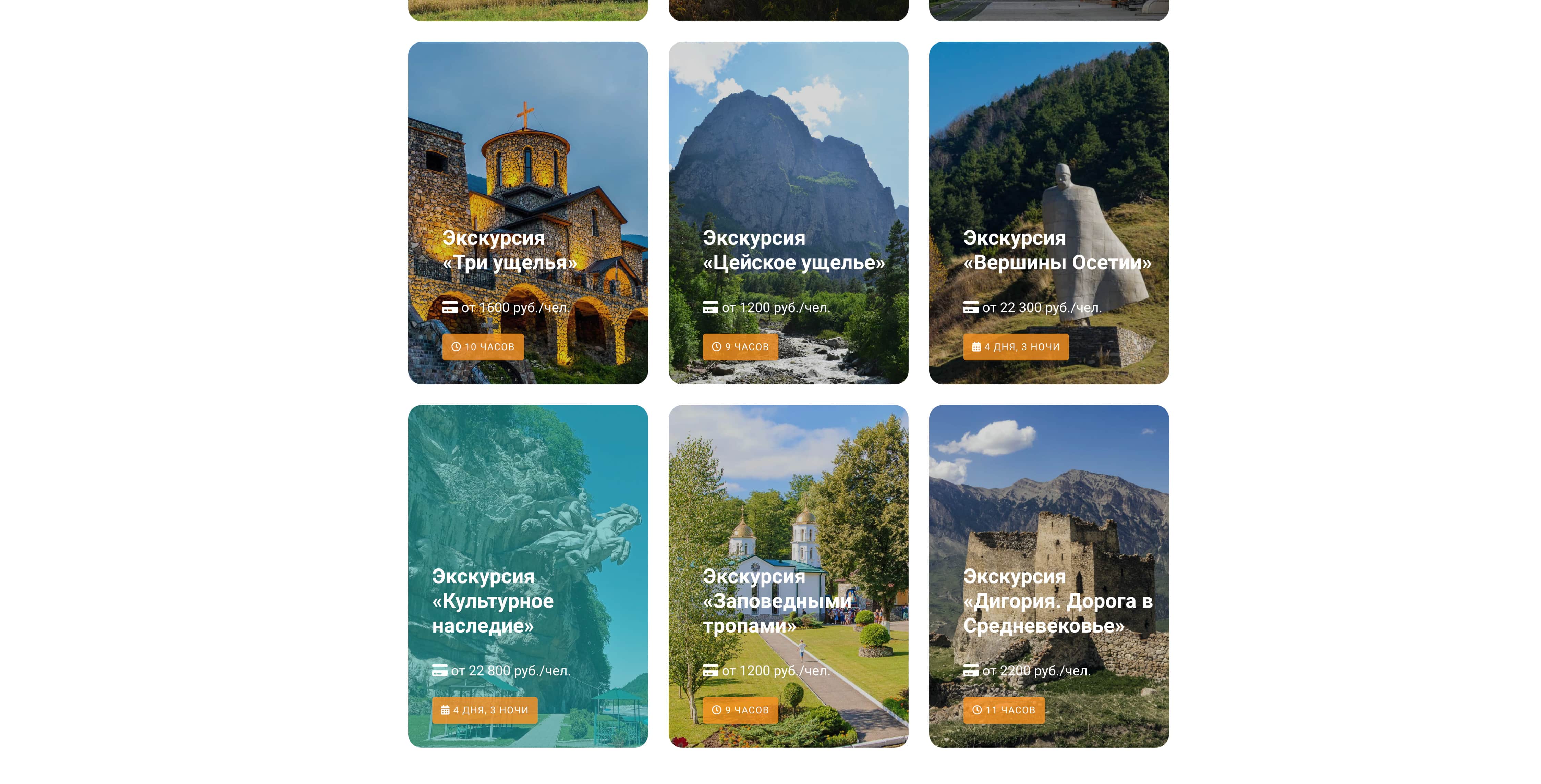 В задачу проекта входило создание рабочего сайта для осуществления продаж туров и экскурсий. На сайте опубликована информация о турах и экскурсиях, имеется много интерактива, созданы карточки экскурсий, посадочные страницы, формы заявки и "призывы к действию" для сбора лидов.
